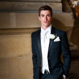 Daniel wore a Moss Bros dinner suit with a white waistcoat and white cravat.