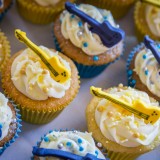 We didn’t have any favours as such on the tables, instead we had a retro sweet table which the florist also decorated and set up for us. We had cupcakes rather than one big wedding cake, which was made by my close friend Natasha and reflected our musical theme.