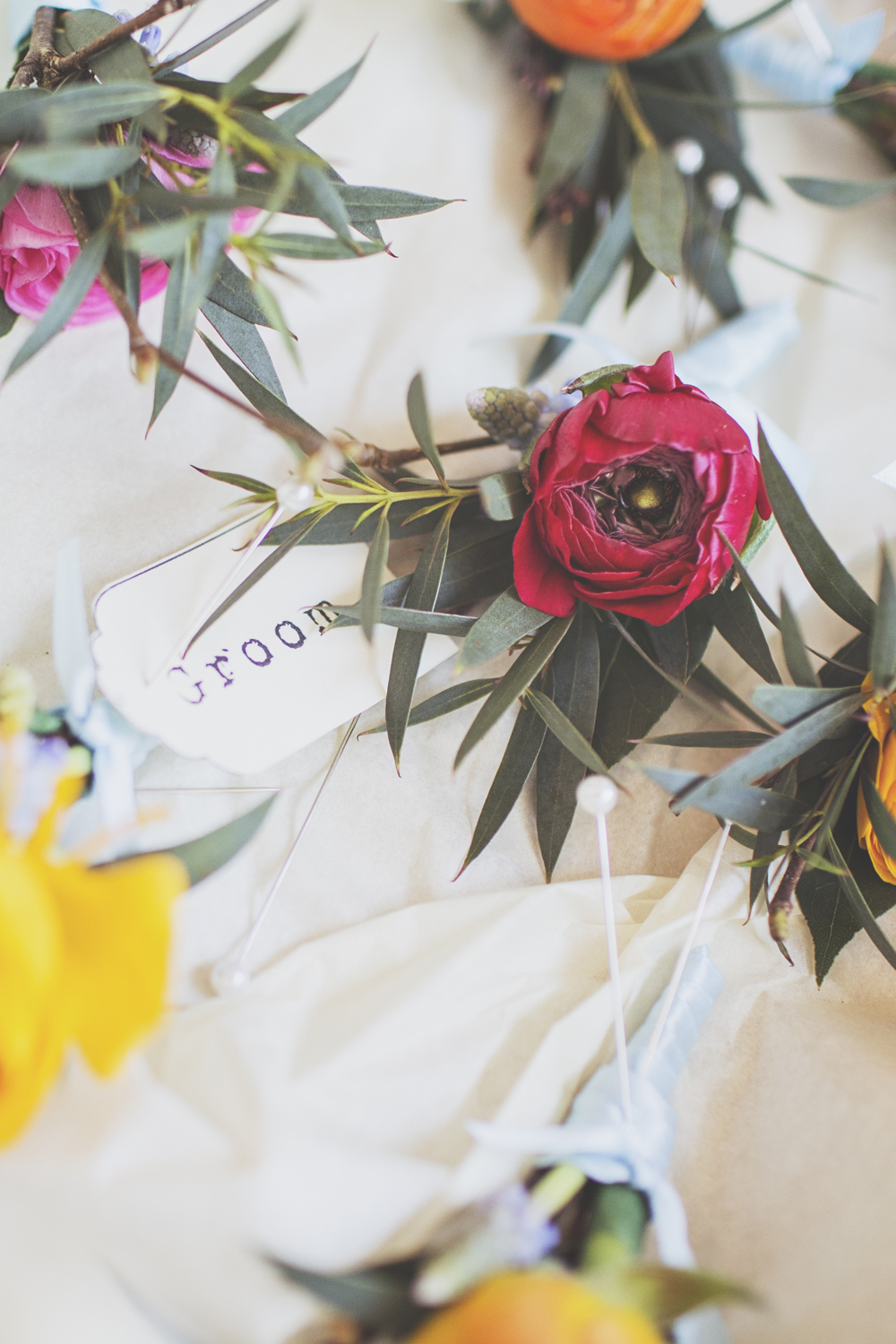 Fletcher and Foley of Sale provided our flowers. My bouquet was made up of orange ranunculus, red parrot tulips, blue muscari, mixed anemones and hellebores and catkins for a touch of spring!