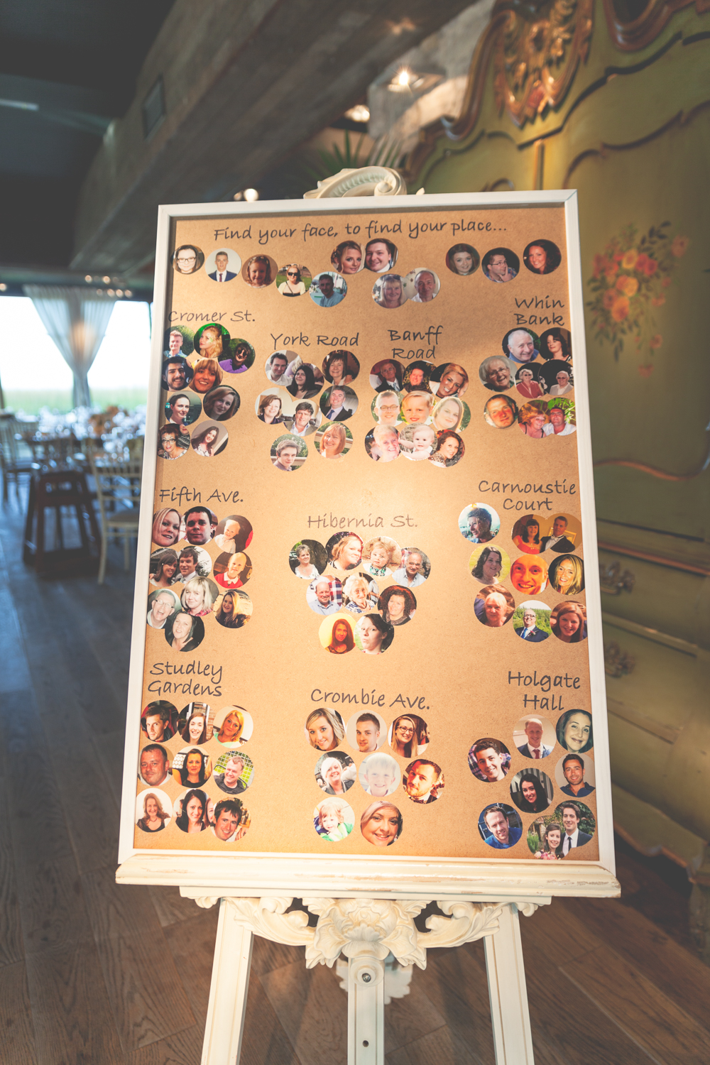 I made our table plan for the venue myself, using photographs of all of our guests, and putting them around tables, which all had the name of streets which Phil or I had lived in – some together.