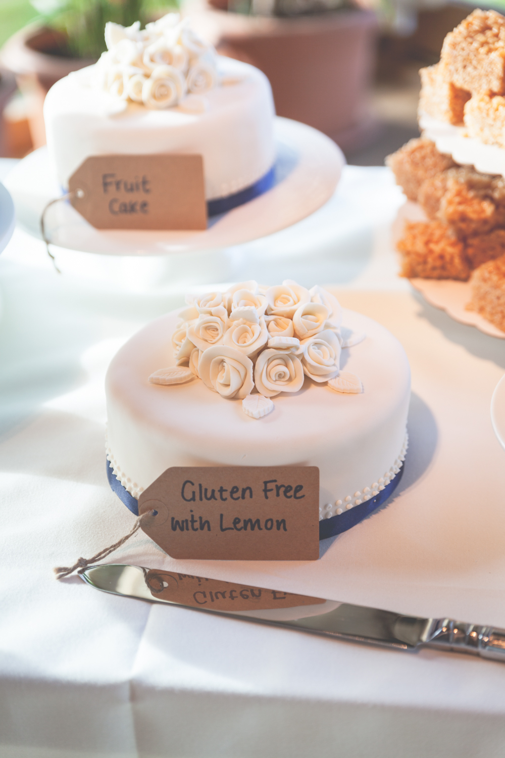 Luckily for us, Phil’s dad, Mike, is a chef and regularly makes wedding cakes. We had a few chats with him about what we were looking for and he was able to sort it all, with the help of Phil’s mum Dawn. We had three tiers, two of which were vanilla sponge and one chocolate. We also had a separate fruit cake, and a gluten free cake.