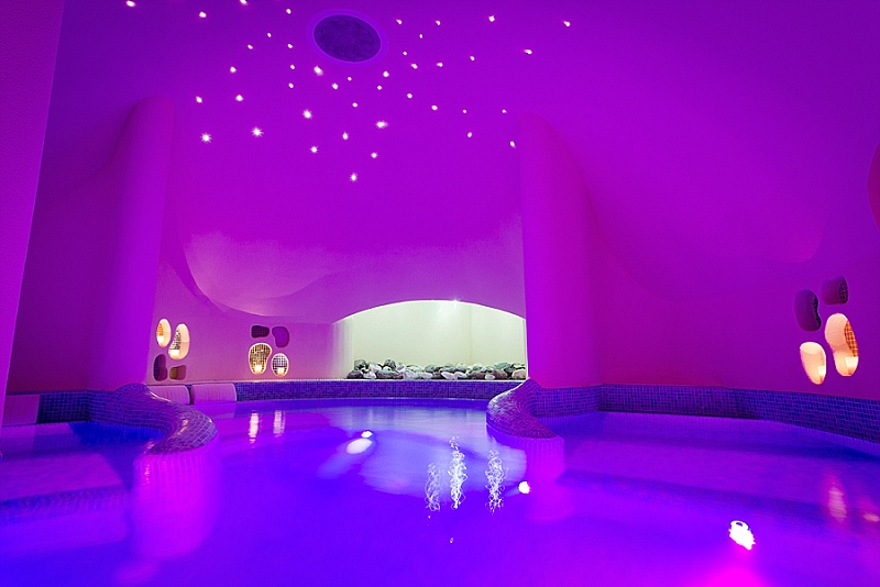 Back inside we tried out the various sauna, steam and shower experiences, which offered different benefits and mood-boosters. For us highlights included the Scented Room, which really invigorated the senses, the Colourflow Cave, humid with a heady mix of Jasmine and Camomile, and the Candle Room, unlike any room we’ve seen at a spa before. Lit by flickering candles and a starry ceiling, the spacious cave-like area invites you to bathe in waters heated to a comforting 34 degrees. Pure heaven.
