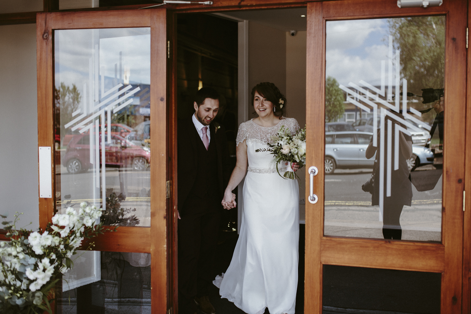 We got engaged on 12th September 2015. Tim set up an amazing treasure hunt all around Sheffield by posting photos with clues on Instagram! I had to solve little riddles and puzzles that he had hidden at each stage that led me to significant places we had been to. The final clue led me to Burbage Edge in the Peak District where we had had some special picnics together and as I walked to the “spot”, Tim was there with his guitar! He sang me a song he had written and then got down on one knee and asked me to marry him.We got married on Saturday 14th May 2016. We chose this date because I have my own floristry business and there were very few days left when we could actually get married as I was getting booked up with so many other brides’ weddings!