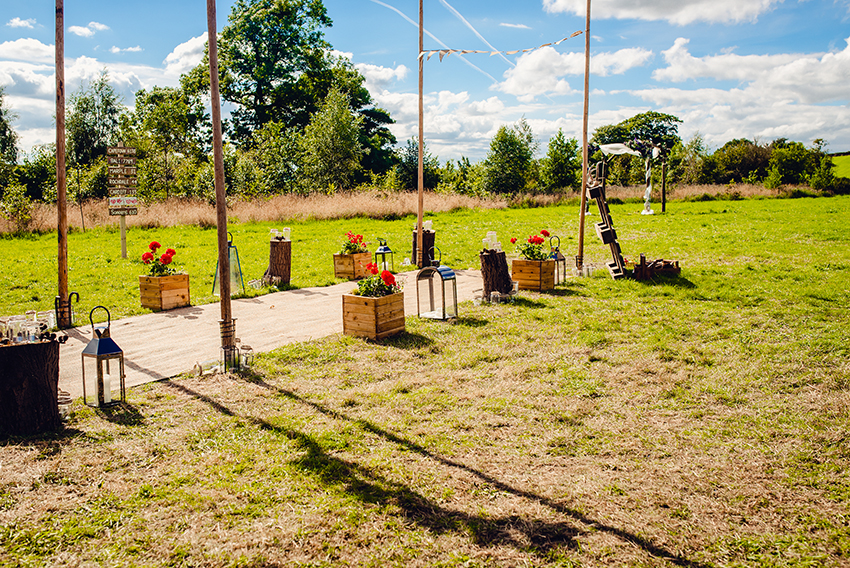 We got engaged in Bali on a very relaxing holiday. Jordan had booked a ‘100 candlelit’ meal at a 5* restaurant. We had our own table by the riverside surrounded by candles and flower petals. We were laughing because they provided us with speakers but the only music they had put on the iPod was Boyzone and Westlife. Very cheesy but great to sing along to! I turned around after a photo to find Jordan on one knee saying “you going to marry me or what then?”We set the date of the wedding for 30th July 2016, as it was the only date our perfect venue – Sycamore Farm Barns in Matlock – had available. It’s in the middle of the Peak District surrounded by rolling hills and farmland. We love the great outdoors so it was perfect. We had a tipi and we were able to get married outside, which was amazing. We were able to stay at the venue in beautiful cottages from the Thursday to the Monday so we could decorate the tipi, put up an archway and include personal touches. Our friends could also camp in the field.