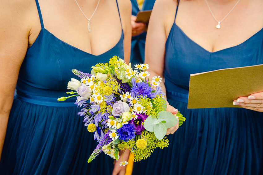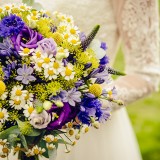 The Green Pavilion, Buxton, provided our wedding flowers, which were yellows and purples – we went for a meadow look.