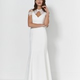 Aria: A wow gown with lace side and back cut-out detail gives this gown a real edge. Style with Aria shrugette for an alternative look.