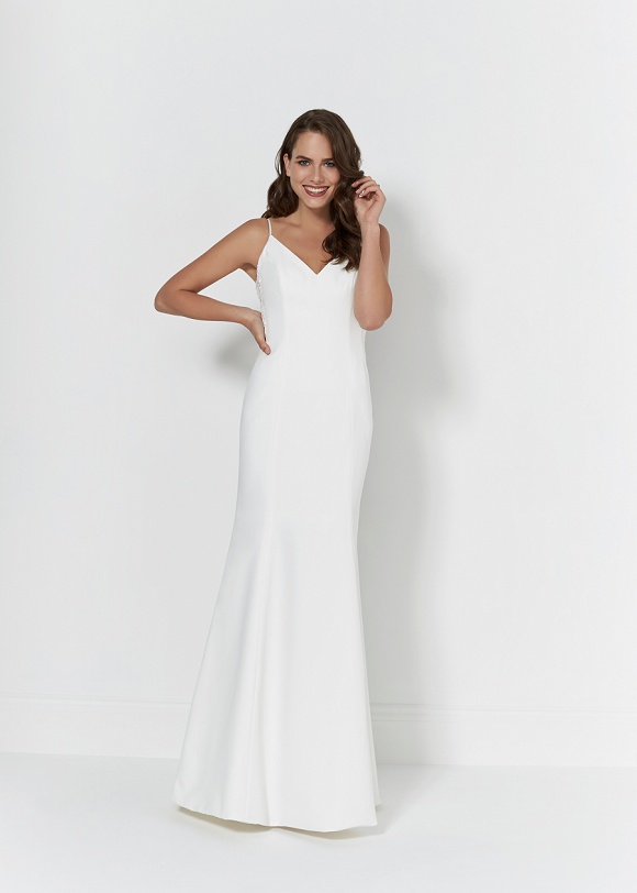 Valerie: Simple yet stunning – this bias-cut column gown is made from a soft satin and is perfect for accessorising!
