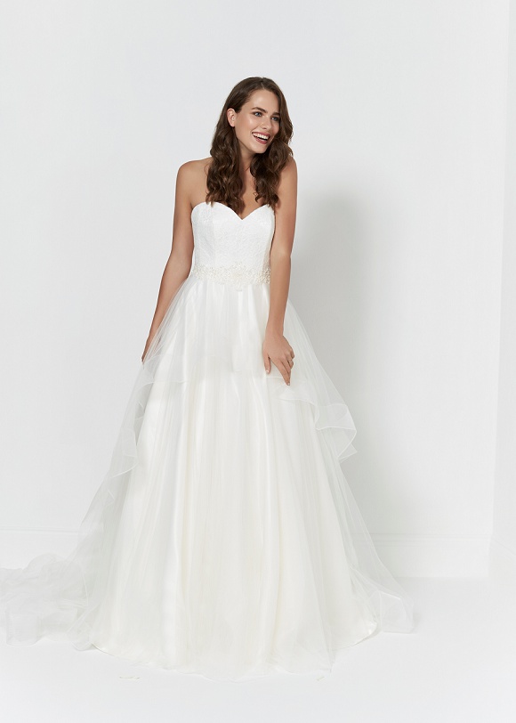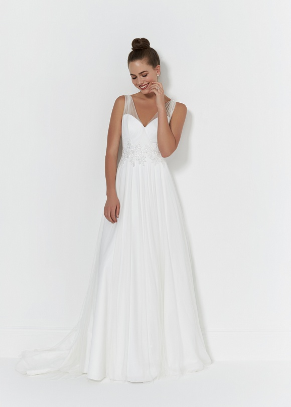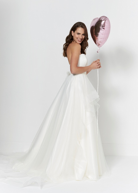 Annalise: Beautiful soft fishtail gown with gathered tulle bust and diamante detail.