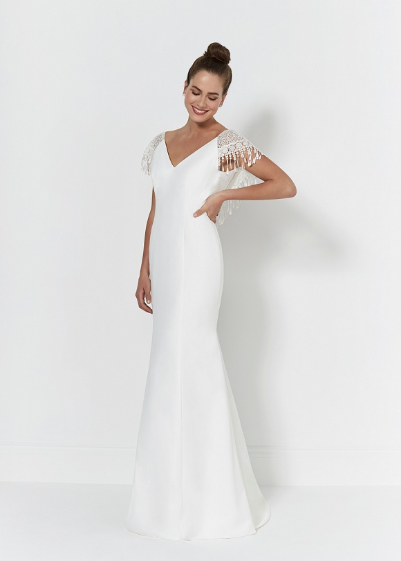 Rosie: It’s all about the back with Rosie, a soft fishtail gown with tassel shoulder and back detail, it will make you want to dance the night away!