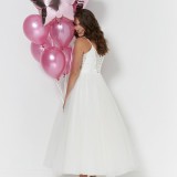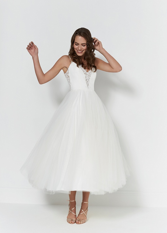 Roxie: Fabulous Roxie features a gorgeous ballerina length tulle skirt and spaghetti strap bodice with lace cut out sides. Style with a stunning pair of shoes!