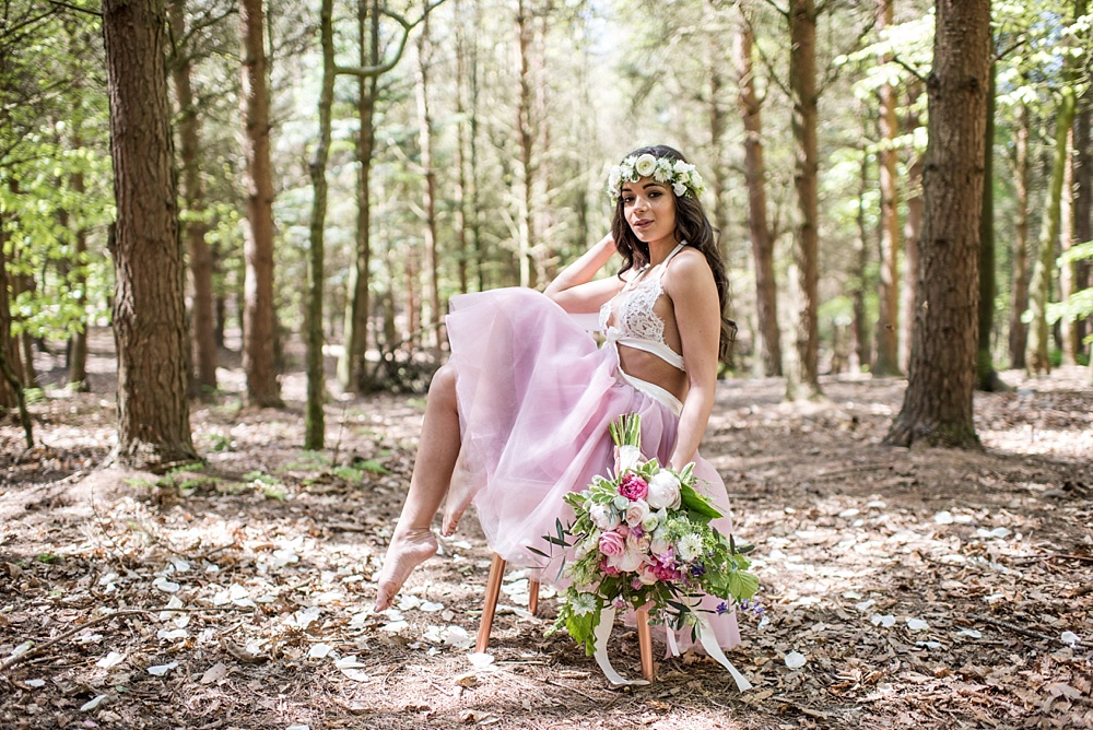 Developed by photographer Jane Beadnell and bringing together a host of talented suppliers, the shoot is a playful take on the boudoir concept, set in the most captivating of woodland settings in Otley, near Leeds – the group’s very own unspoilt, serene Garden of Eden.