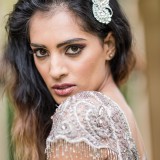 Along with the Eliza Jane Howell gowns and Bespoke Vintage Castle accessories, we wanted makeup and hair to match the glamour and feel of Christmas. Channelling a subtle sense of old Hollywood glamour, we looked to Smink Makeup to achieve this – the expert in creating this look, with a luxurious golden palette for the eyes, deep plums and reds for the lips and a relaxed bridal up-do and a down look for later, with a crimped finish in our model’s golden copper highlights. The model’s nails were painted gold and her wrists were adorned with freshwater pearl bracelets, also provided by Bespoke Vintage Castle.