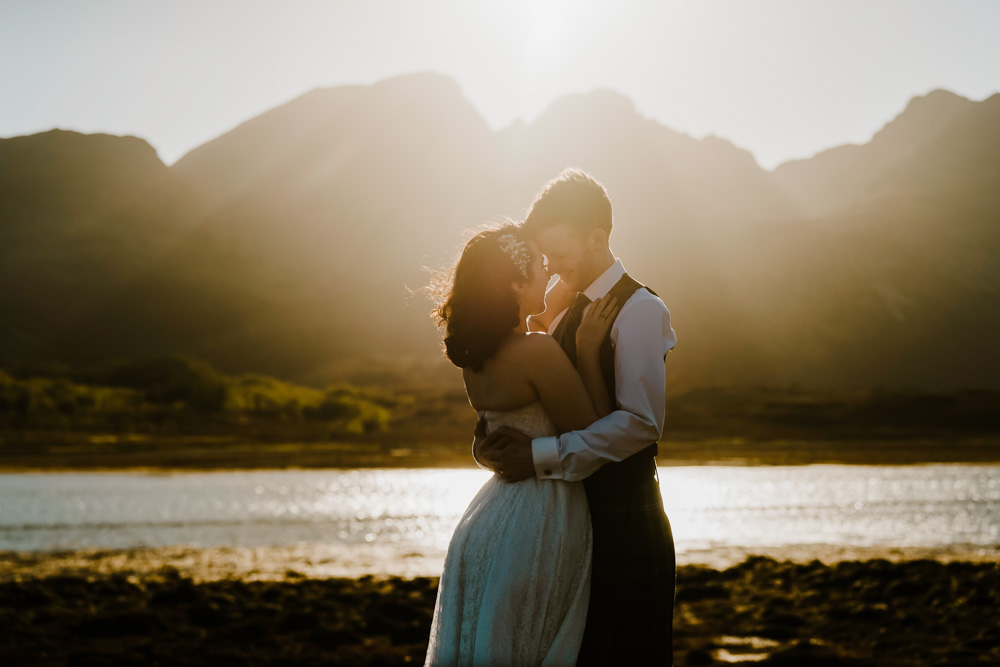 Looking back at our day I’d say one of the highlights had to be when we were hiking over rough ground after we got off the boat to reach the loch for the ceremony. The sun was shining, and everyone was in a great mood. Chris and I also really enjoyed our sunset photo session overlooking the Cuillin mountains.