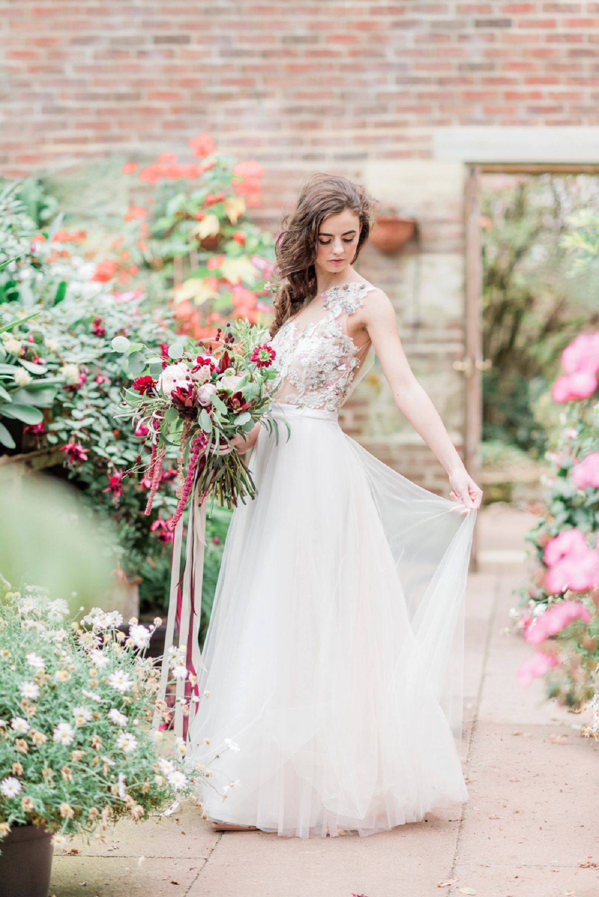 Sprig and Thistle provided all of the floristry, styling and decor for the shoot, inspired by wanting to encourage brides to explore the possibility of colour in their bouquet. We chose burgundy as a key focus within the colour palette for the shoot to create something a little more daring, stylish and unique whilst also bonding the popular colour scheme of blush tones, creams and foliage.
