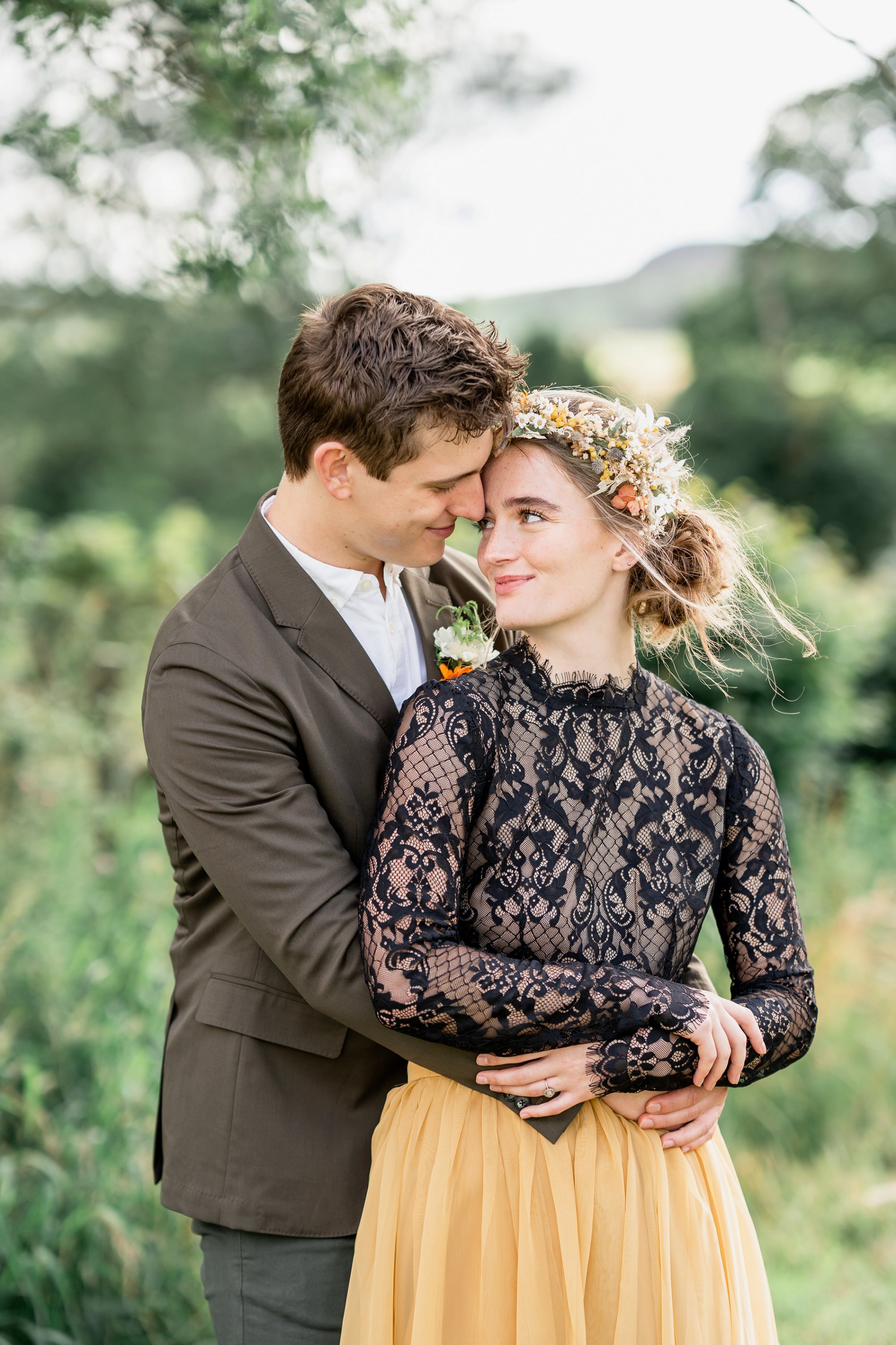 Helen says: For this shoot, I really wanted to emphasise sustainability in the wedding industry, and also be able to modernise what a rustic wedding can look like. Having the majestic tipis with the stunning backdrop of the High Peak, by the reservoir, was perfect. Using as many local suppliers using as many eco-friendly ideas that was still stylish and epic.