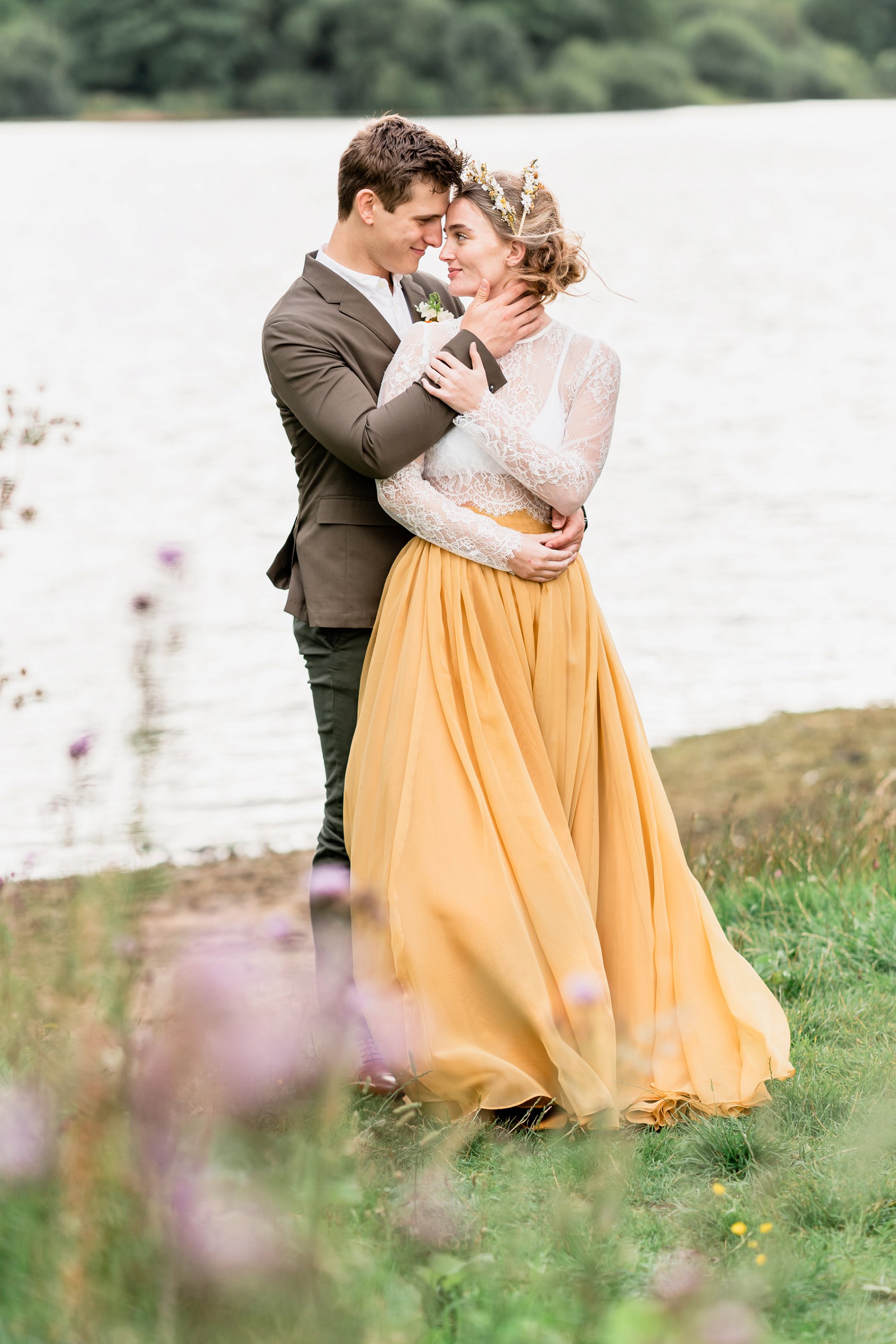 The sun shone amazingly for us in this afternoon shoot and we even got some incredible shots right on the water’s edge just as the golden hour was setting in. After the manic morning of the other shoot being busy, this shoot was almost peaceful. I was slightly worried about all the big and bold colours all working together, but it turned out to be a favourite for a lot of the suppliers. It was so different and unique but worked. Hopefully we’ve achieved an eco rustic look with modern style and attitude.