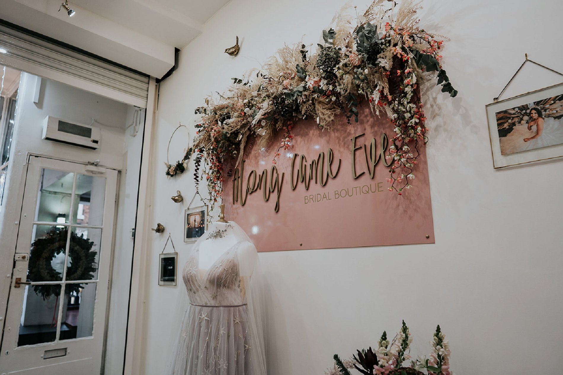 I own the boutique with my mum, Moira. She worked as a designer and pattern cutter and had her own bridal studio creating couture bridal gowns through my childhood. Growing up around fashion and bridal definitely sparked a passion in me for both. We have always wanted to work together so when the time was right, Along Came Eve was born.