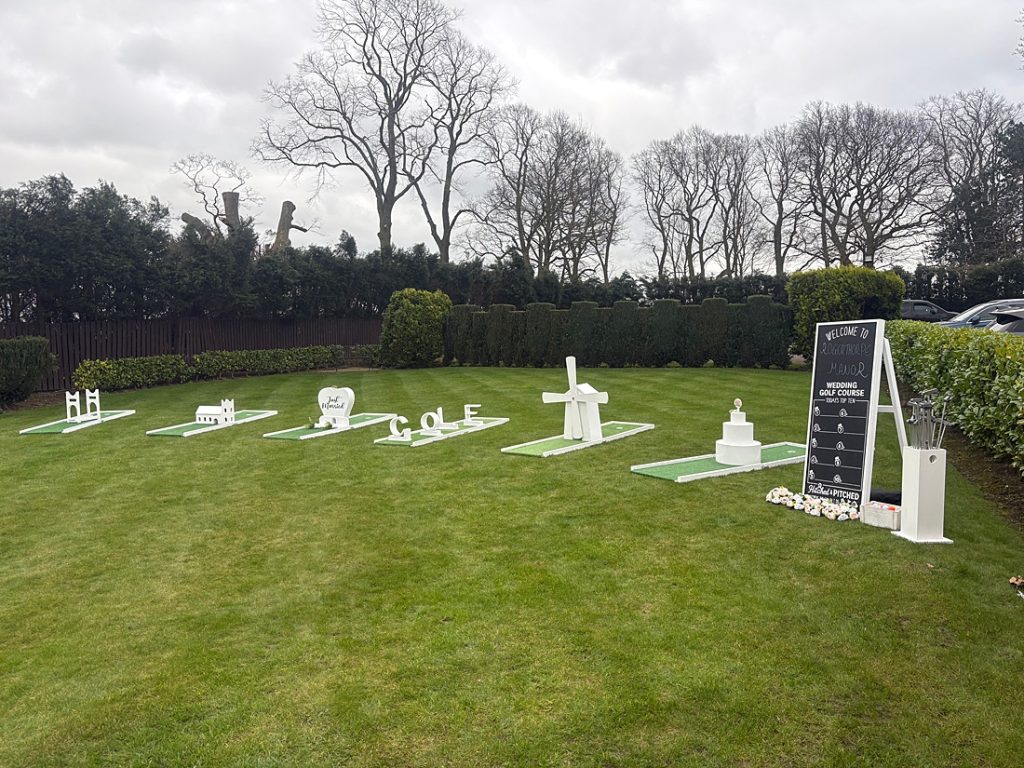 Hitched and Pitched brings the joy of crazy golf and professional darts to your wedding day! Whether you’re tying the knot of just looking to entertain your guests, our mobile mini golf course and portable darts setup are the perfect additions for laughter, fun and unforgettable memories.